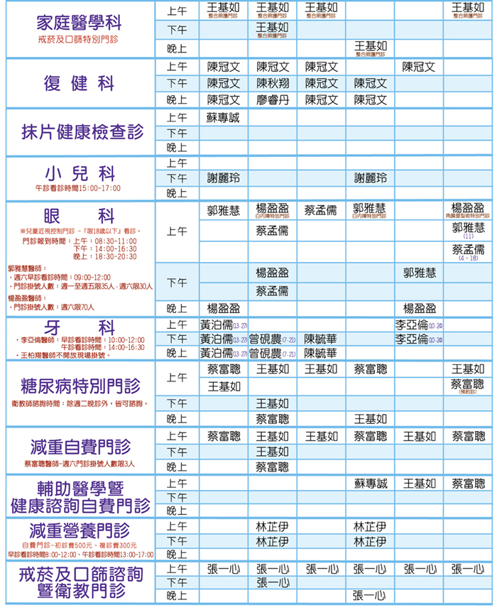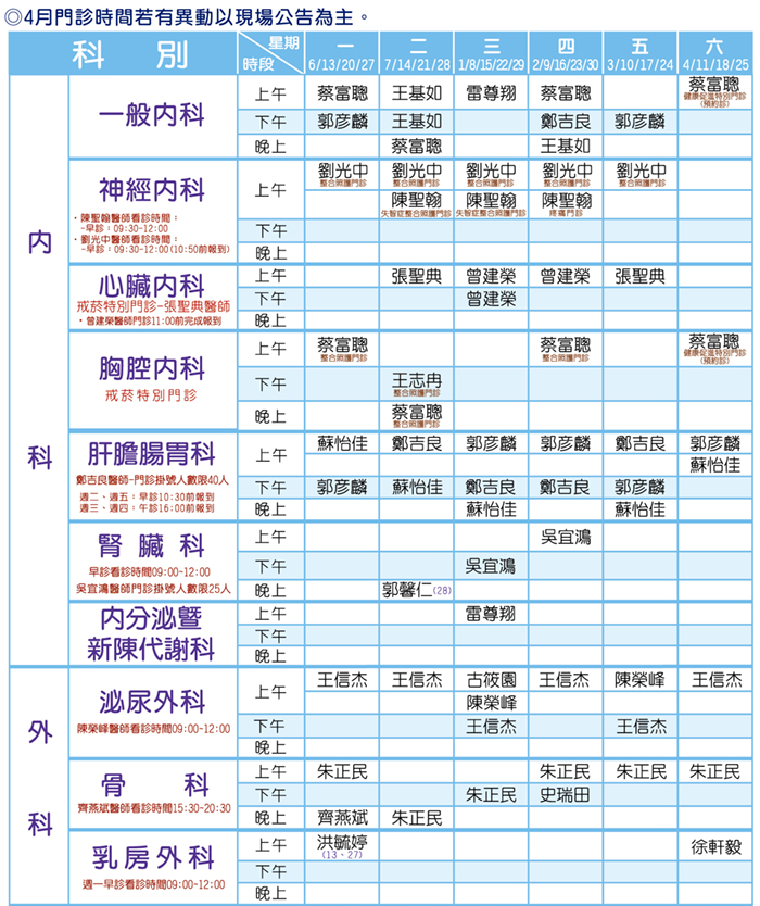 4月門診表