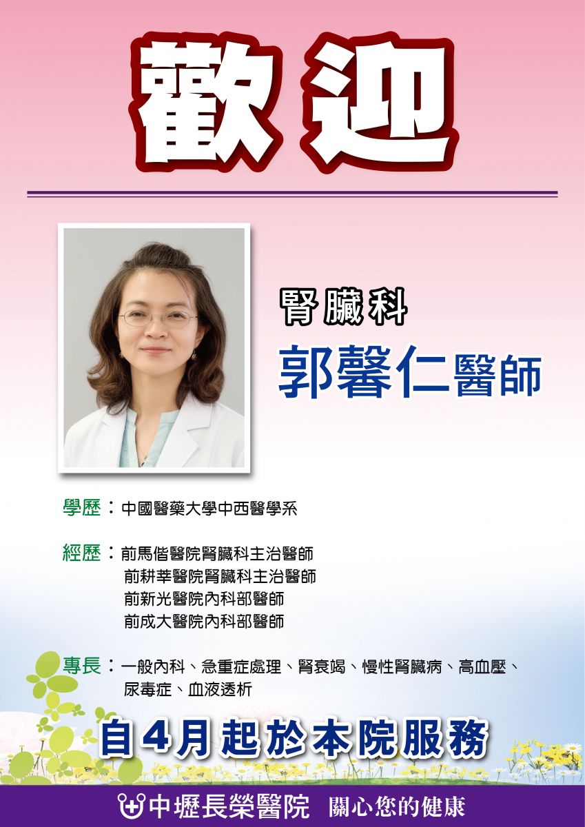 歡迎腎臟科-郭馨仁醫師到院服務