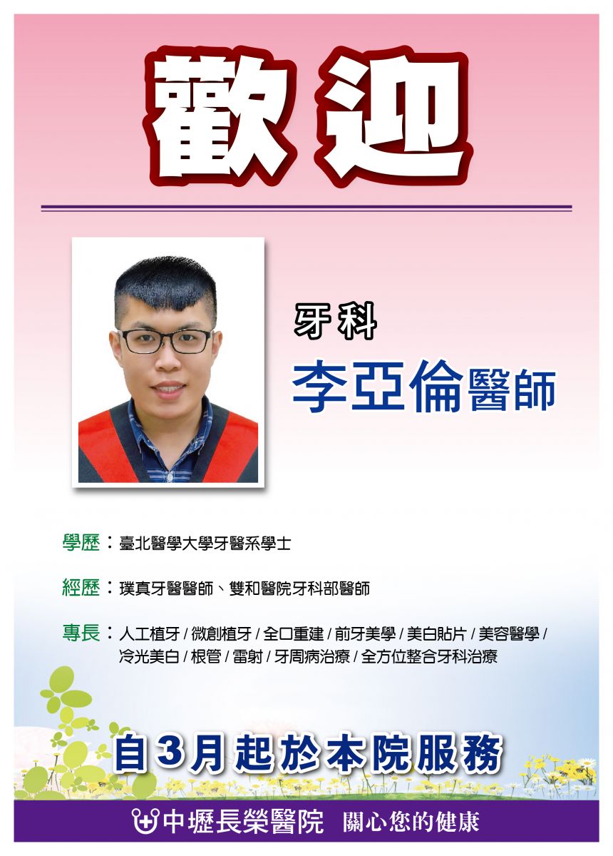歡迎牙科-李亞倫醫師到院服務