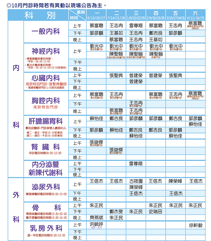 10月門診表